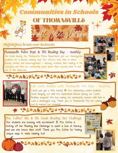In Thomasville, where 1 in 3 children face the harsh realities of poverty, every act of support is a ray of hope. Communities In Schools isn't just an organization; we're a tight-knit community committed to empowering Thomasville City Schools students.